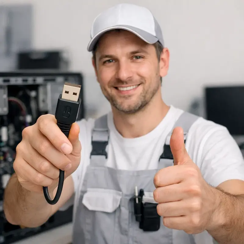 - Сбои при подключении - если кабель повреждён или соединение выполнено неплотно, компьютер может не обнаружить устройство. Необходимо проверить соединения, попробовать другой порт, заменить кабель или перезагрузить.